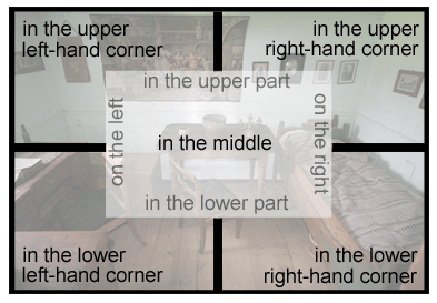 Nevystačíme-li si s výše uvedeným rozdělením obrázku, můžeme popisovat, co je v jaké části obrázku, např. vpravo, vlevo, uprostřed, v rohu. Podívejte se na tento obrázek: