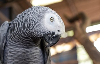 a colourful exotic bird which people often keep as a pet, it sometimes learns to say real words