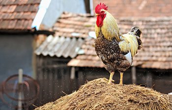 a farm bird that cannot fly, a hen or a rooster, people eat its meat