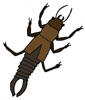 a small brown insect with a long body and two pincers at the end of the body