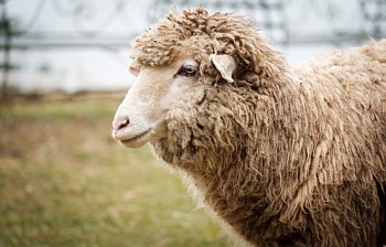 a white farm animal that is kept for wool or meat