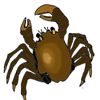 a sea animal that has a hard shell on its back, eight legs and two pincers, it walks sideways
