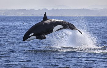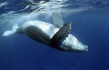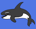 a large black and white mammal that lives in seas and oceans, it looks like a giant fish
