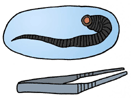 a small creature that lives in lakes etc., it has a long body and no legs, it can hold onto your skin and suck your blood
