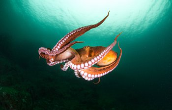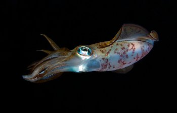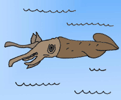 a creature that lives in seas and oceans, it has a long soft body and ten tentacles
