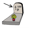 a stone on a grave, it usually has an inscription with the name of the dead person etc.