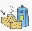 a piece of soft material full of small holes, it is used for washing things with, because it easily hold water