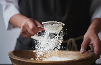 a small instrument that breaks food into small particles (when food is rubbed against it)