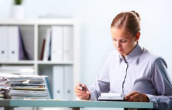 a lady (or a man) who works in a company and assists her (or his) boss, types letters, answers phone calls etc.