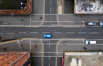 a place where people can walk across a road, it is usually marked by white stripes on the surface of the road