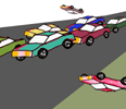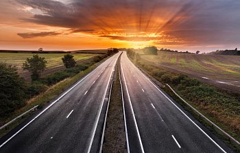 the surface specially made for cars and lorries etc. to travel on, it is usually black with white lines