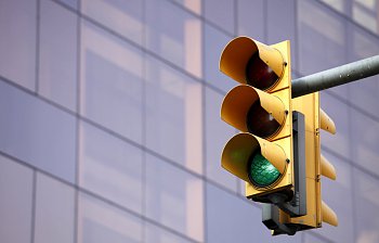 the system that directs the traffic at a place where two streets meet, it has three lights, green, yellow (amber) and red
