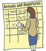 a board or a sheet of paper with the arrival and departure times