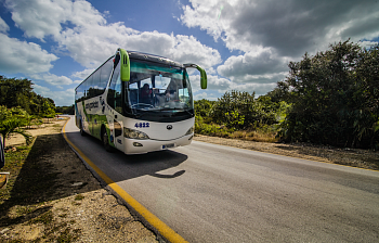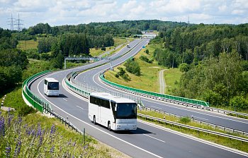 a big vehicle with four or six wheels using a road, it can carry many passengers, it stops regularly on its route to let people in and out
