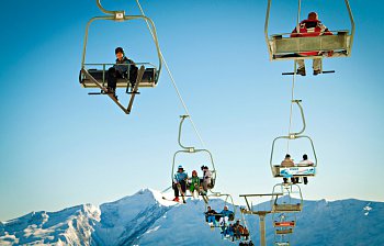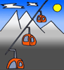 a way of transporting people in a carriage travelling through the air fastened to a cable