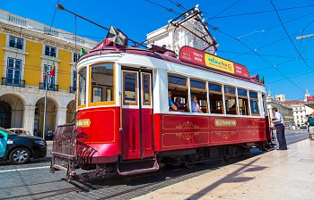 a kind of train for people that travels through a city and stops at regular intervals to let people in or out