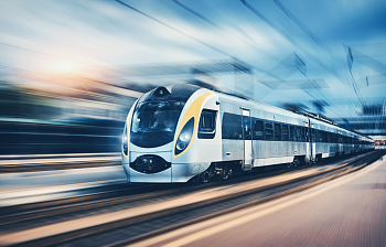 a big vehicle that uses railway tracks, it usually has a locomotive in the front and a few carriages, it can carry passengers or goods