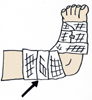 a strip of cloth or other material used to cover an injured part of the body, usually to prevent bleeding etc.
