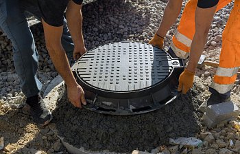 a round opening in the road, sidewalk etc. that leads to the sewage system