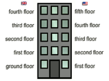Zatímco u rodinných domů, které mají přízemí a patro, se používají jednoduše slovíčka downstairs a upstairs, u bytových domů je tomu jinak. Tady pro označení patra budeme potřebovat řadovou číslovku (first, second, third...) a slovíčko floor.