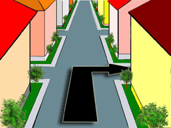 Věty, které jsme dnes probrali, si můžete cvičit na následujících obrázcích. Zkuste rychle bez dlouhého přemýšlení říkat věty, kterými člověka pošlete např. stále rovně, první ulicí doleva, druhou doprava apod. Na každý obrázek můžete klepnout myší a nechat si správnou větu přehrát, nebo pouze ukazatelem myši na obrázek najet a vazbu si přečíst.