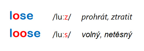 Jelikož studenti často znají jen slovo loose, píší občas “oblíbené” slovíčko loser/'lu:zə/ špatně se dvěma O. To sice existuje, ale má jiný význam: