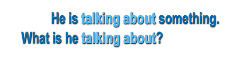 Když se nyní budeme na to ‘something’ chtít zeptat, použijeme na začátku tázací zájmeno what (ptáme se na věc, na něco neživotného). Předložku ale necháme přesně tam, kde je nyní. Tím, že v tázací větě vlastně už nebude slovíčko something (nahradili jsme ho tázacím what na začátku věty), dojde k tomu, že předložka zůstane na konci.