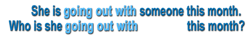 Někdy totiž stačí přidat třeba příslovečné určení a vše se změní. Vraťme se k naší větě She is going out with somebody. Představte si, že k této větě přidáme příslovečné určení času, např. this month.