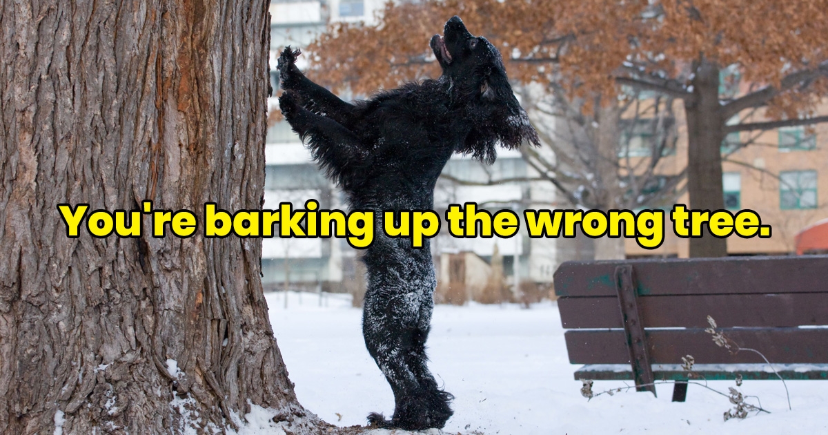 - Pláčeš na špatném hrobě. /‘štěkáš u špatného stromu’/