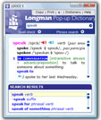 Další částí DVD je Pop Up Dictionary. Pokud na něj kliknete, celý slovník se zmenší do 'kapesních' rozměrů a bude vždy nad všemi dokumenty, se kterými pracujete. Můžete mít takto slovník stále po ruce. To však není vše. Pokud pracujete třeba na internetu nebo ve Wordu, stačí najet kurzorem nad slovo, které neznáte, a v tomto malém slovníčku se vám toto slovo ukáže i s definicí. Nemusíte tedy překlikávat a nemusíte ani vpisovat slovo.