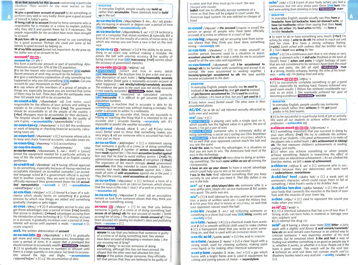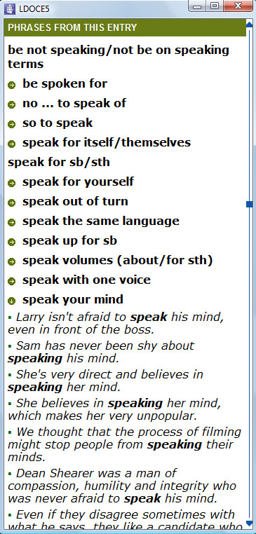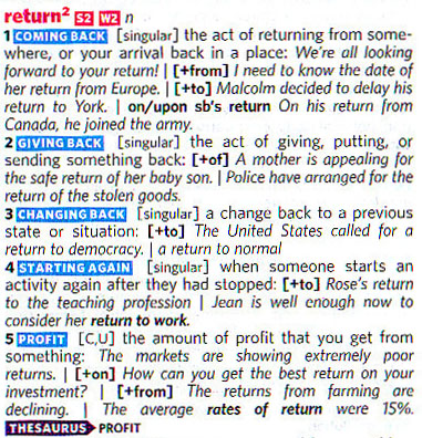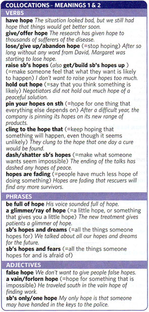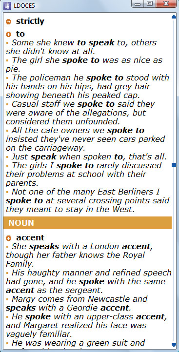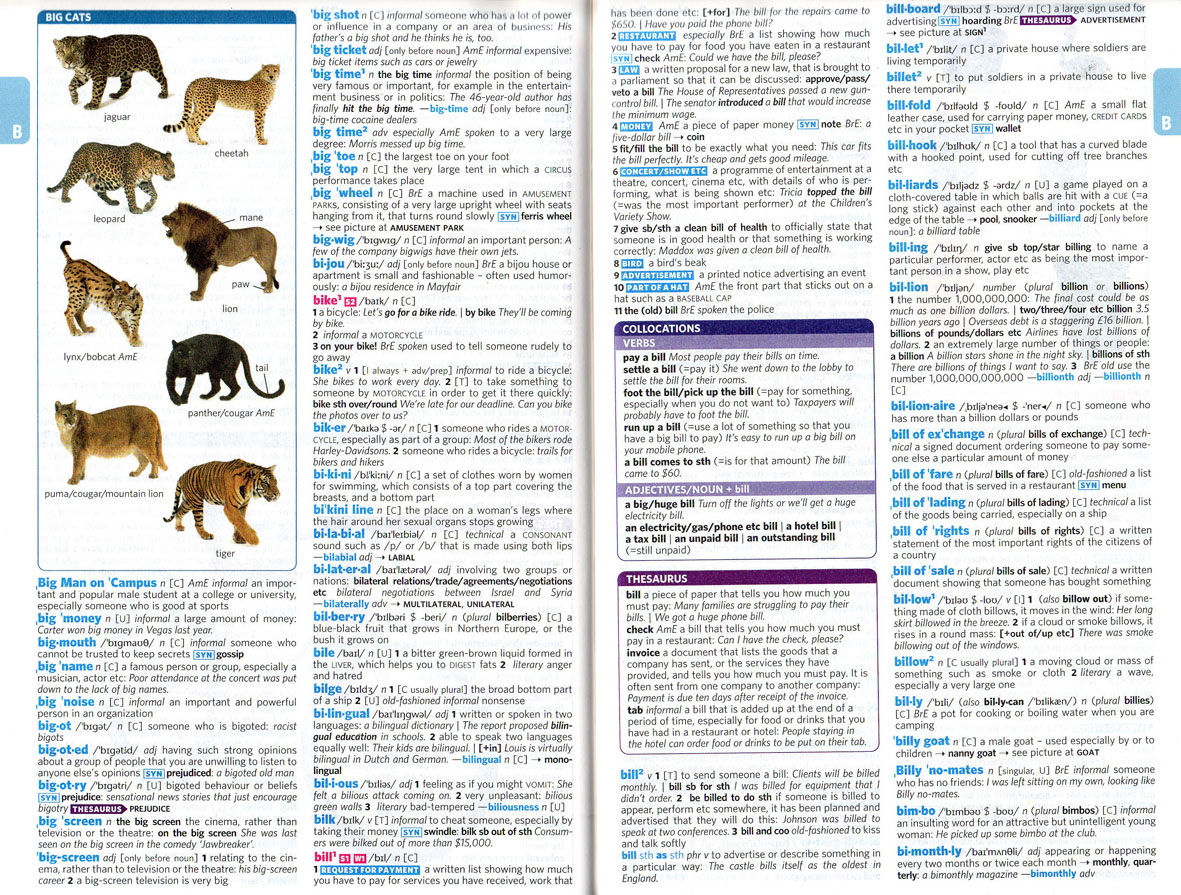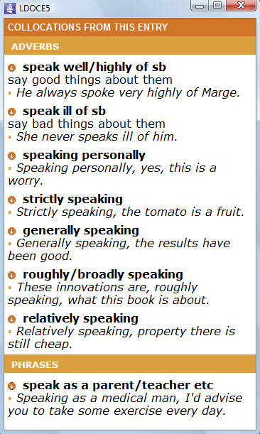 - Collocations from this entry (kolokace stejné jako v rámečku tištěné verze a zde mezi definicemi) první dva náhledy