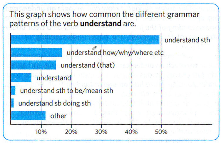 Kromě těchto rámečků narazíte o výkladu jednotlivých slovíček často na tzv. GRAMMAR PATERNS, jako je správný slovosled, slovesné vzorce nebo možné předložky.