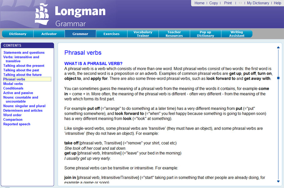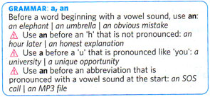 Kromě rámečků Collocations a Thesaurus naleznete ve slovníku rámečky GRAMMAR. Jedná o slovíčka, kde je důležité zdůraznit