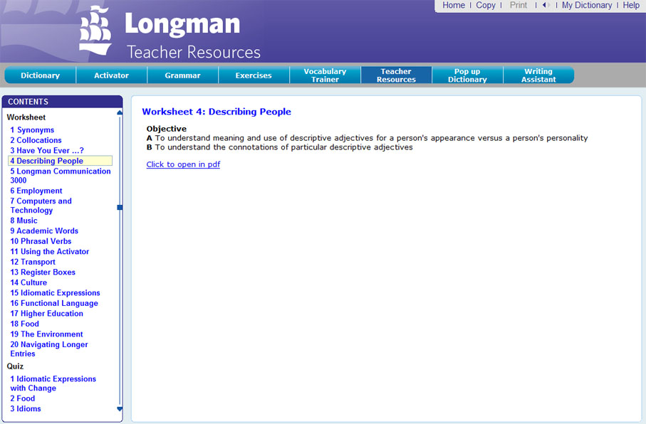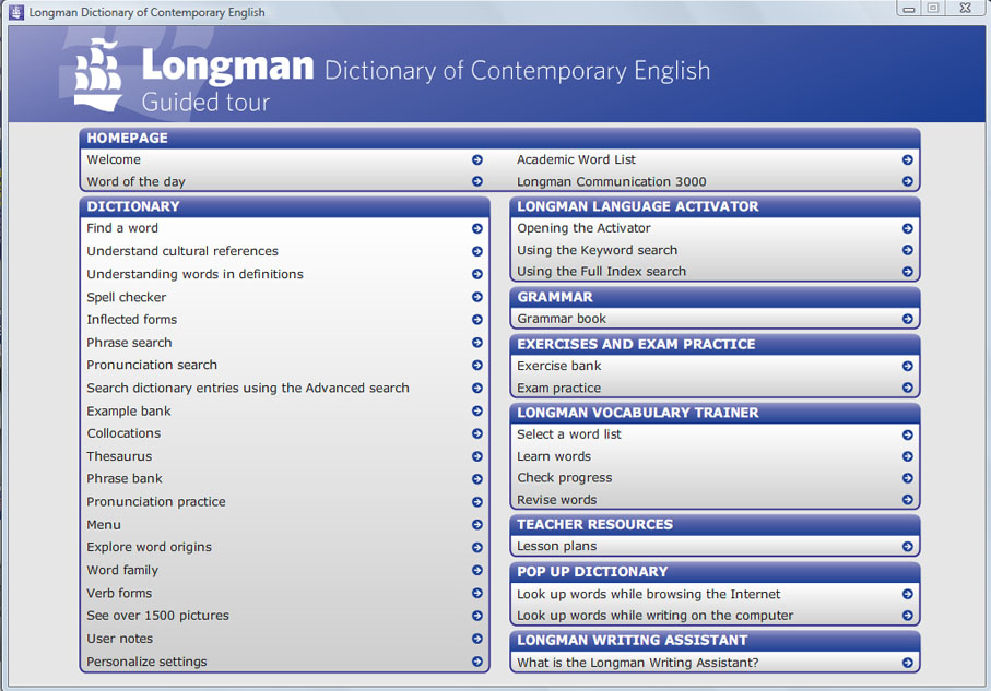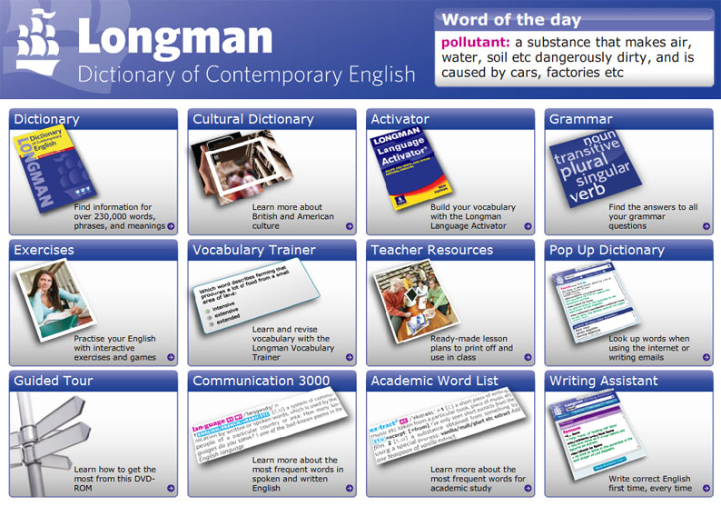 Dokazuje to už jen fakt, že jako první na trhu připravili pro studenty slovník, jehož součástí není CD-ROM, ale rovnou DVD-ROM, kde naleznete přes 2 GB užitečných dat nejen pro studenty, ale i pro jejich učitele. Na DVD naleznete mimo jiné Longman Vocabulary Trainer, díky kterému si jedinečným a velice efektivním způsobem můžete procvičovat slovíčka. Tohoto 'trenéra slovní zásoby' však nemusíte používat jen na svém počítači, ale také na PDA nebo mobilním telefonu s připojením na internet. A když už jsme u internetu, určitě potěší možnost mít přístup ke slovníku online odkudkoli. I toto nový Longman umožňuje.