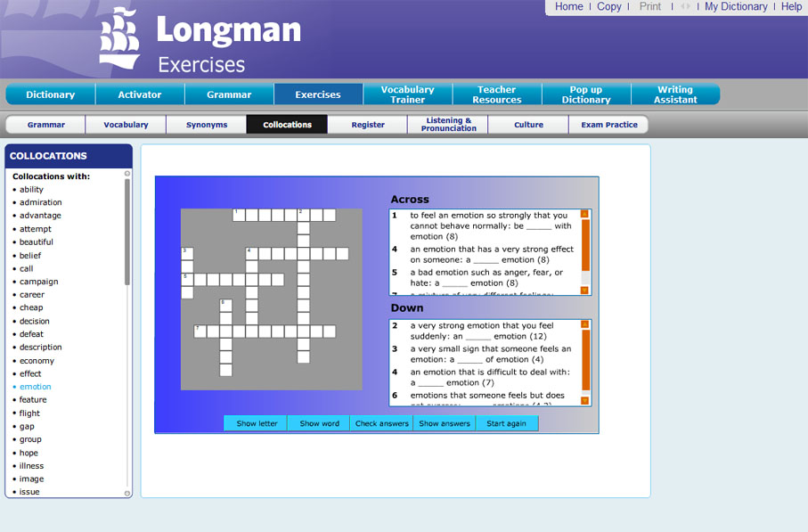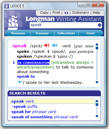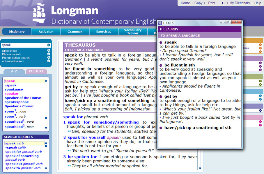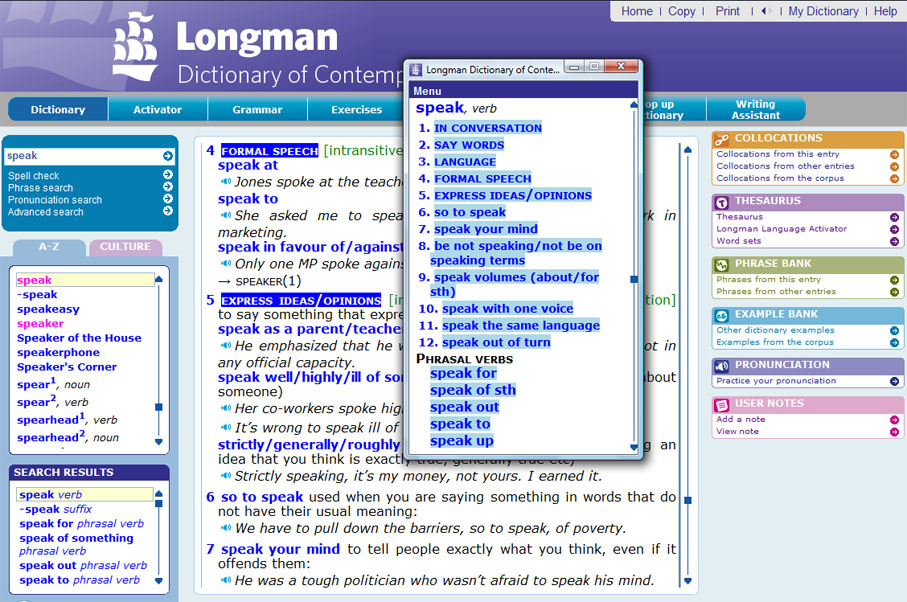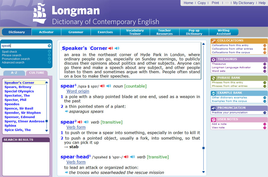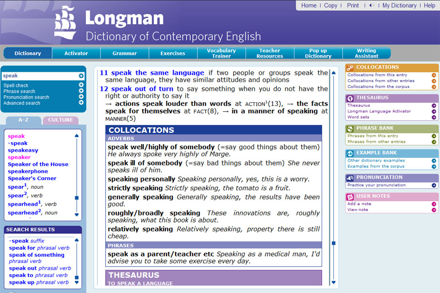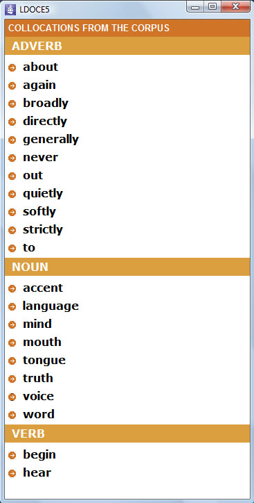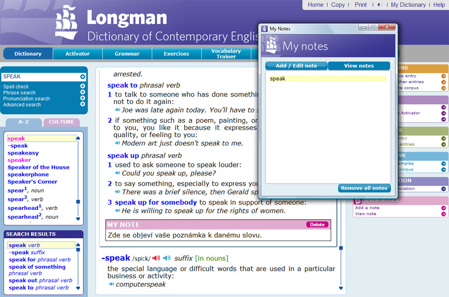 - integrovaný slovník Collocations s více než 65,000 kolokacemi