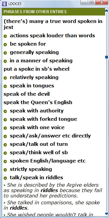 - Phrases from this entry (všechny fráze, které jsou ve všech definicích u daného slova)