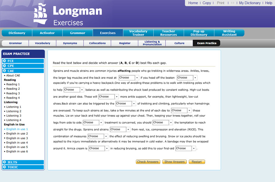 - tisíce otázek interaktivních cvičení včetně zkoušek FCE, CAE, CPE, IELTS a TOEIC