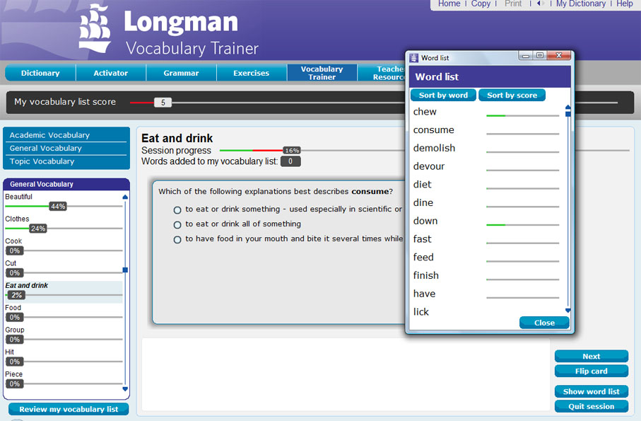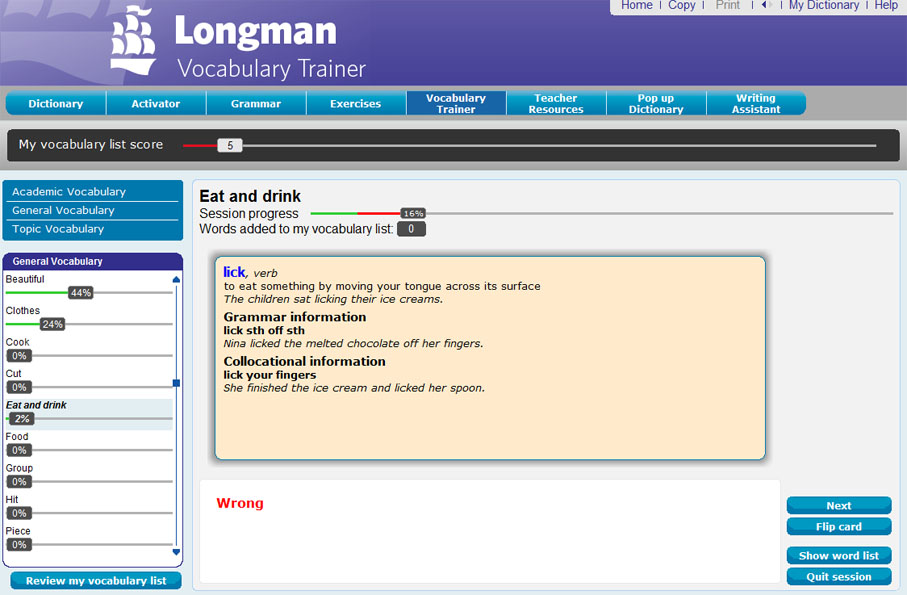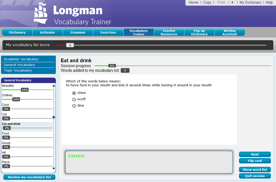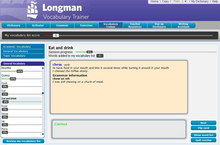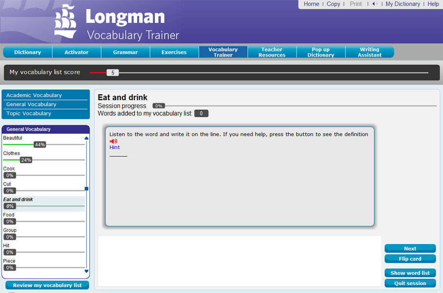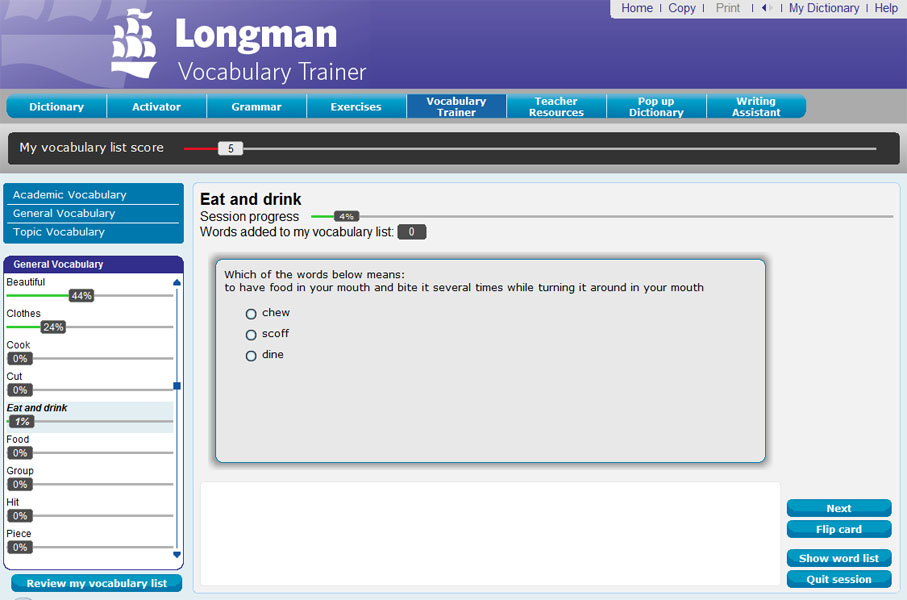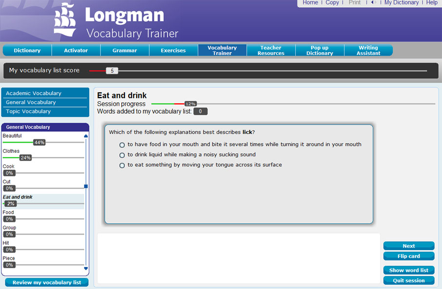 - Longman Vocabulary Trainer: nejrychlejší způsob, jak se naučit a zopakovat slovíčka