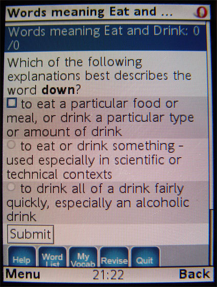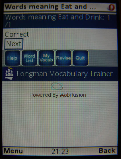 Pokud se vám líbil osobní trenér slovní zásoby, který je na DVD, a můžete k němu mít přístup i online, přidám ještě 'třešničku na dort'. Tento Vocabulary Trainer totiž můžete používat i ve svém mobilním telefonu nebo PDA.