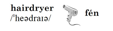 Pozn.: Kromě pravopisu hairdryer/'heədraɪə/ se můžete setkat i s hairdrier/'heədraɪə/, nebo hair dryer.