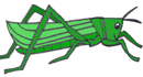 an insect that lives in the grass, jumps very high and far and makes a sharp sound by rubbing its legs together, it is usually green