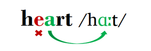 Jako první zmíníme slovo heart/'hɑ:t/ (srdce), které začátečníci sice znají a používají, ale velmi často ho špatně vyslovují. Mají tendenci vyslovovat nějakým způsobem e, které se zde ovšem nečte, proto je správná britská výslovnost /hɑ:t/, americká /hɑ:rt/.