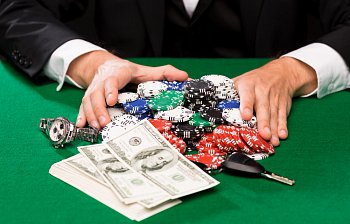 a sum of money risked on something, esp. a game (e.g. cards etc.)