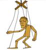 a small toy that can be moved by pulling wires or strings, or by putting your hand inside it