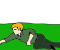 to move forward on your arms and legs with your body near the ground or touching the ground completely