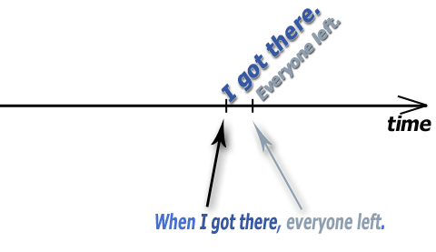When I arrived, everyone had left. – Když jsem dorazil, všichni už byli pryč.