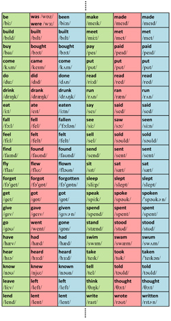 Nepravidelná slovesa jsou kámen úrazu pro mnoho studentů. Na našich stránkách jsme se jim věnovali již několikrát. Najdete zde seznam základních 24 sloves a také pokročilejší seznam 85 sloves.