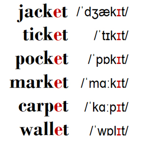| wallet/'wɒlɪt/ | socket/'sɒkɪt/ |