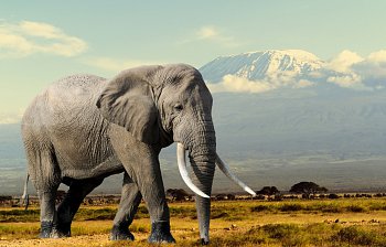 a very large grey African or Asian animal with big ears and a long nose (trunk)