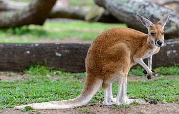 an Australian animal that jumps on its hind legs and carries its young in a pocket on its belly